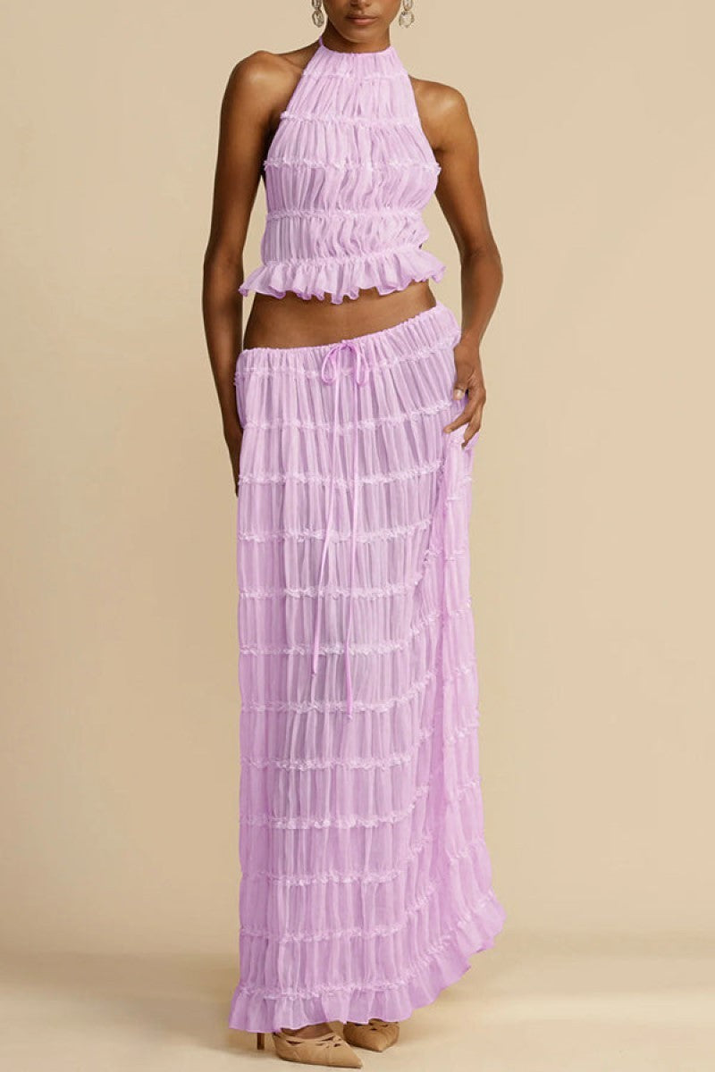 ANNE is jouw nieuwe favoriet voor warme dagen. De tweedelige set met rugloos haltertopje en soepelvallende broek biedt maximale luchtigheid met minimale moeite – perfect voor stranddagen, festivals of stijlvolle city outfits.