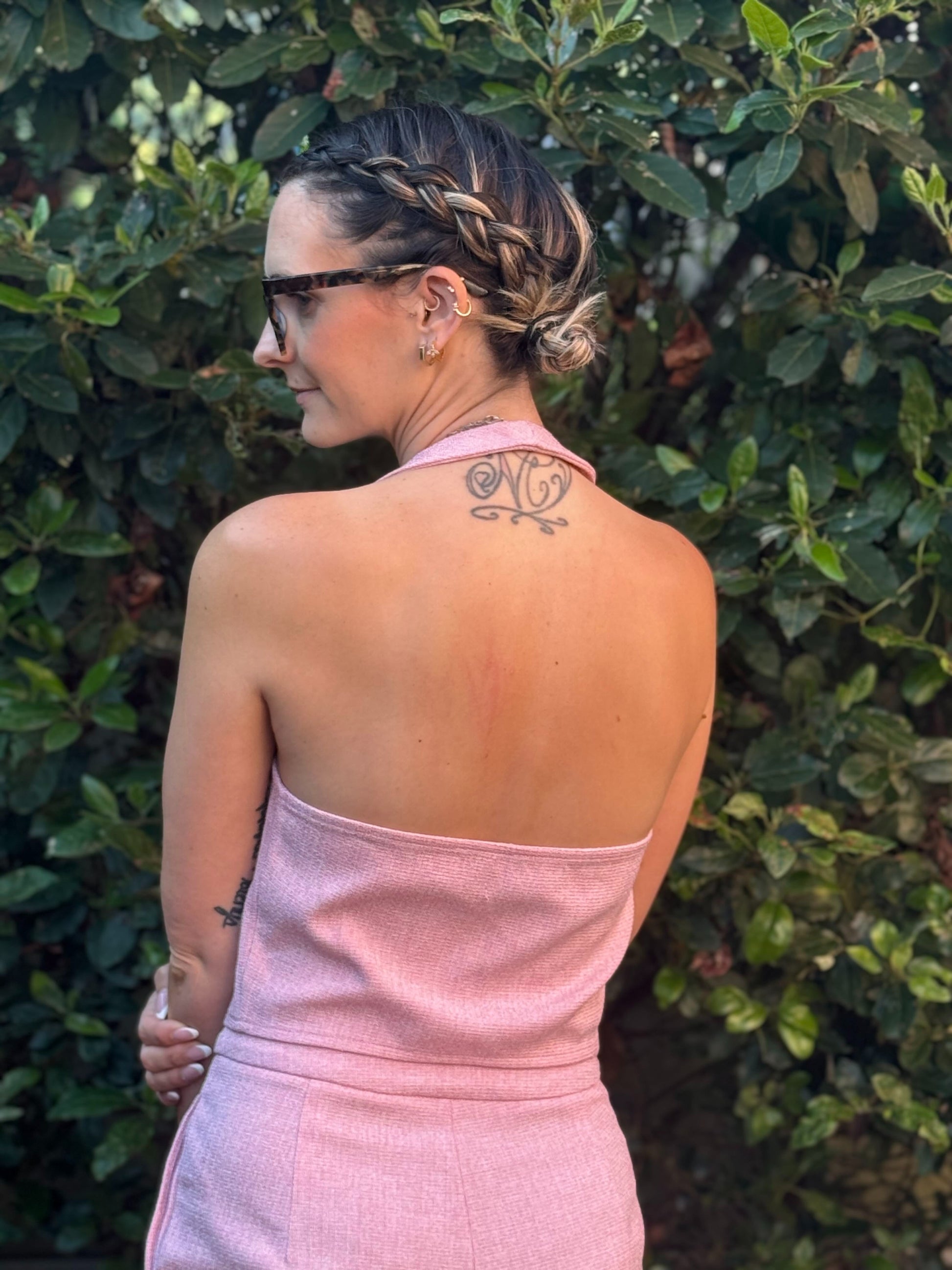 ESME is geen outfit – het is een statement. Het getailleerde cropped vest gecombineerd met de perfect zittende short creëert de ultieme look tussen Boss Babe en It-Girl. Of het nu voor een city brunch, een after-work-date of een power-look voor een event is – ESME geeft je zelfvertrouwen met een vleugje nonchalance.