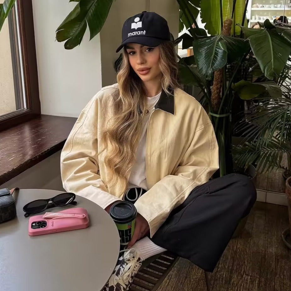 ✨ Retro-charme – Klassieke reverskraag gecombineerd met moderne splicing-details voor een look met karakter.