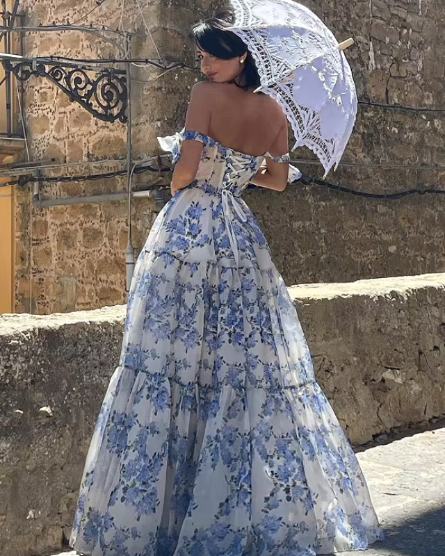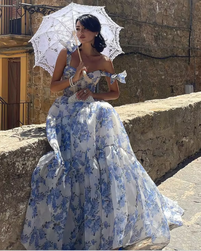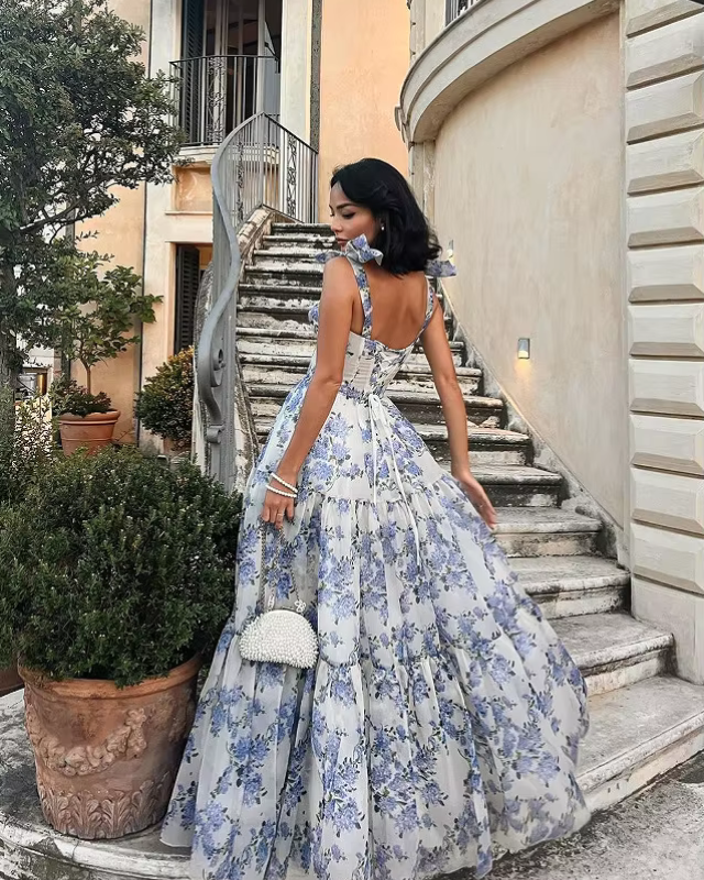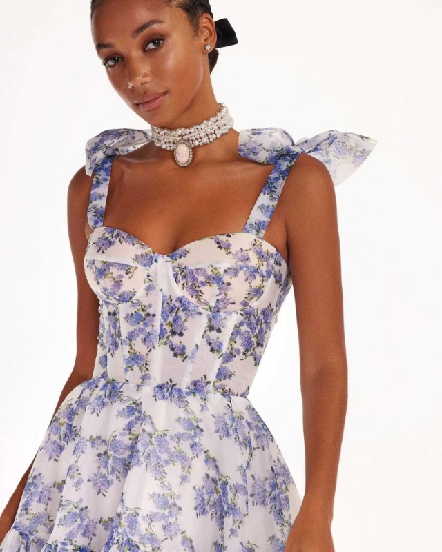 Of je nu flaneert door historische binnensteden, een stijlvolle zomerse party bijwoont of een middag in de kasteeltuin doorbrengt – XENIA geeft je de glamoureuze look van een moderne koningin. Met haar wijde, vloeiende rok, het fijne bloemenpatroon en de speelse strikdetails op de schouders, brengt ze tijdloze elegantie en dromerige lichtheid in jouw dagelijkse leven.