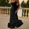 Krachtig effect – Fijne spaghettibandjes en een minimalistisch bovenstuk creëren een flatterend silhouet dat zowel modern als tijdloos is.